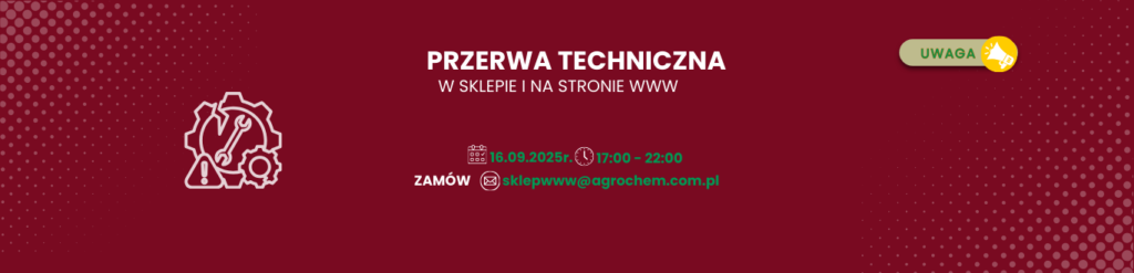➡️ Zamówienia w trakcie przerwy technicznej można składać wyłącznie drogą mailową na adres: sklepwww@agrochem.com.pl